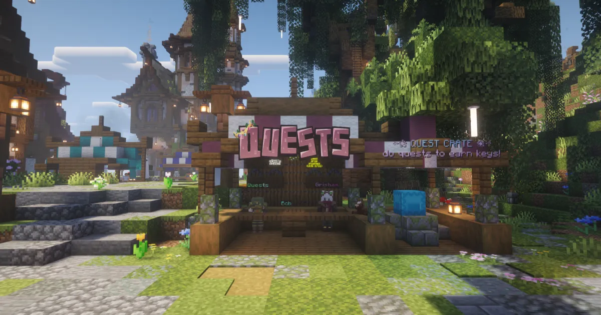Up for an adventure? Click on the quest NPC at /spawn to choose a quest. Different quests have different prizes! Hold the quest scroll in your off-hand while you complete it.